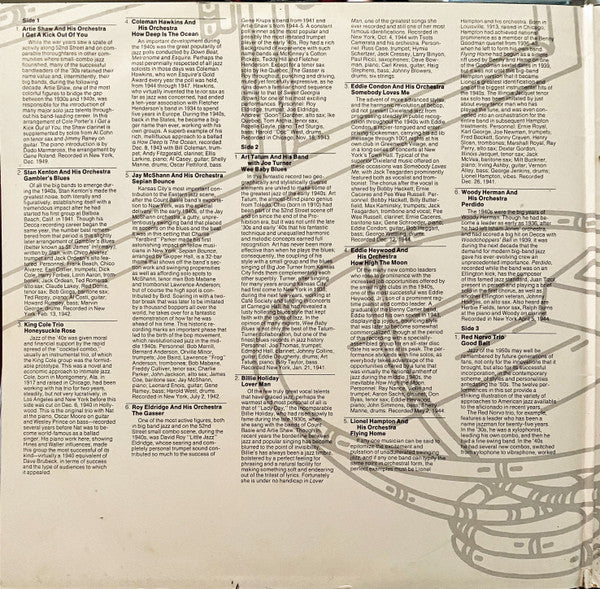 Auto-coupled release. The contents of this album were assembled in 1956 as a record counterpart to "The Encyclopedia of Jazz", with the collaboration of the author, Leonard Feather, and the publisher, Horizon Press Publishers of 156 Fifth Ave., New York, N.Y. 10010. Other albums in this series are Vol. 1 and 2 (Jazz of the '20s and '30s) on MCA2-4061 and Vol. 5 (Jazz of the'50s and '60s) on MCA2-4063. Notice: The selections contained in this album have been previously released on the Coral and Vocation labels. A1 recorded in New York, Dec. 1949 A2 recorded in New York, Feb. 13, 1942. A3 recorded in Hollywood, Dec. 6, 1940. A4 recorded Dec. 8, 1943. A5 recorded in New York, July 2, 1942. A6 recorded in Chicago Nov. 16, 1943. B1 recorded in New York, Jan. 21, 1941. B2 recorded in NewYork, Oct. 4, 1944. B3 recorded Dec. 12, 1944. B4 recorded May 2, 1944. B5 recorded Dec. 26, 1941. B6 recorded in New York, April 5, 1944. C1 recorded April 1953. C2 recorded early 1945. C3 recorded at the Pasadena Civic Auditorium in 1949. C4 recorded at Gene Norman's Crescendo Club in Hollywood on Jan.21, 1955. C5 recorded in New York, Feb. 2, 1956. C6 recorded in New York, Dec. 29, 1953. C7 recorded in New York, July 23, 1953. D1 recorded recorded at the Band Box in New York, Mar. 16, 1953. D2 recorded in Los Angeles, Dec. 15, 1955. D3 recorded in New Yor, Set. 29, 1955. D4 recorded in Los Angeles, Sept. 29, 1955. D5 recorded at the Hollywood Palladium, September 1953.Data provided by Discogs